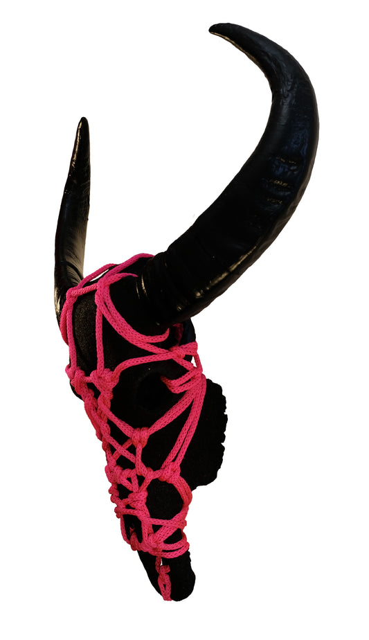 SHIBARO WATER BUFFALO SKULL - Flouro Pink on Black
