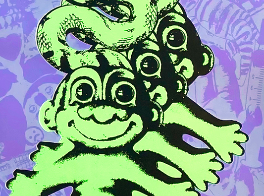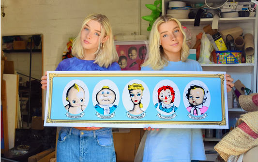 The Cameron Twins are a collaborative artist duo of identical twins who work together in a rangeof different media including screen print, painting, collage, photography, casting, sculpture andinstallation. Their work has an overall strong and garish style using an oversaturated bright colourpalette to create a surreal quality. The vivid colours and child-like naïve aesthetic with chaoticensembles of images allows them to work playfully, exploring the ideas surrounding childhoodimagination and dreams within their art practice.These montages and prints incorporate old paintings, photographs, notes and drawings collectedfrom their own childhood belongings. The process of using these then acts as a visual conduit totheir past and childhood memories. They draw upon a shared sense of nostalgia which is thenexpressed through their practice, suggesting they are also collaborating with their past selves.The print process is a very important element of the Cameron Twins’ practice, as it allows them toexplore the idea of repetition, doubling and mirroring, which relates directly to the