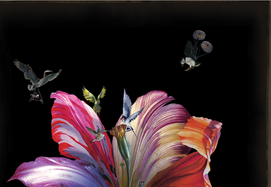Rosco Brittin is a London based artist specialising in screen printing and street art techniques. He explores the universe of natural and unnatural camouflage dipped heavily in a light fantastic, producing work that has been described as “when special F/X and paper first meet”.